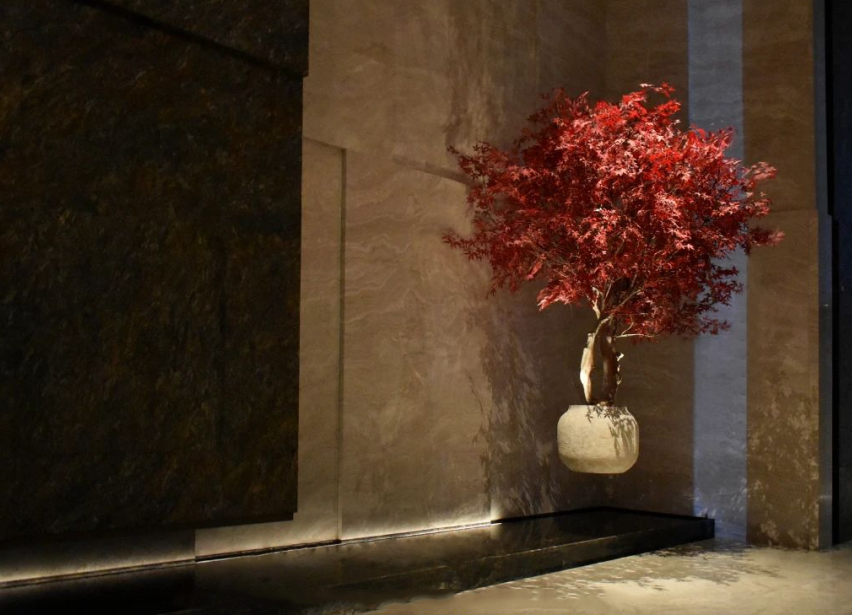 水景懸浮吊飾“熱情紅楓”與潺潺流水蜿蜒交織,展現(xiàn)漁村逐夢人如火如荼的熱情歲月。
