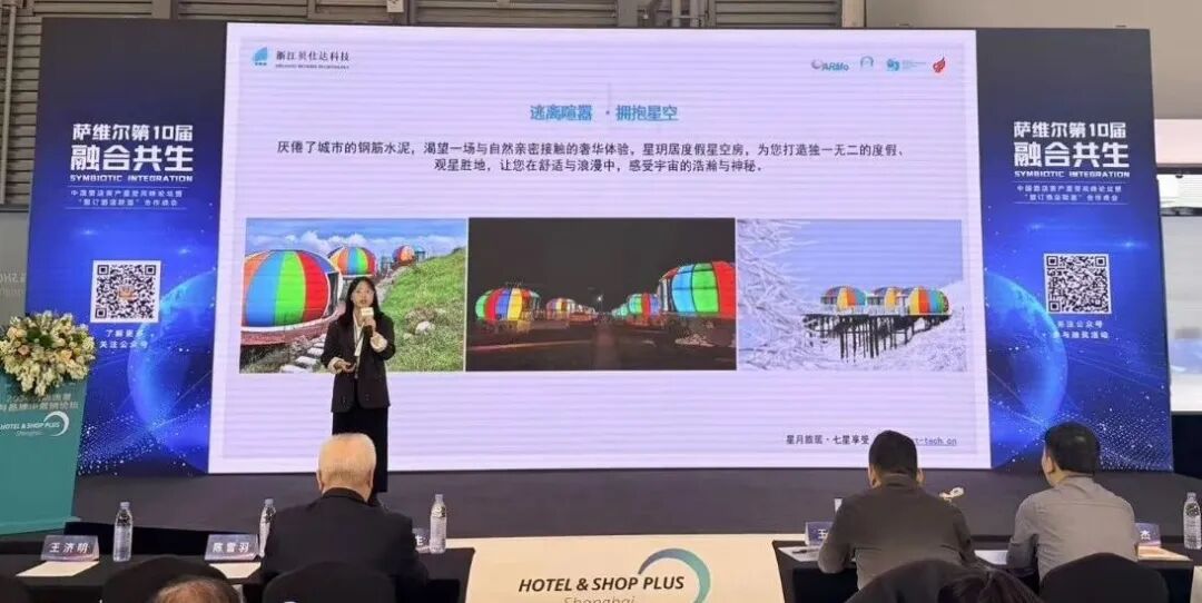 浙江貝仕達(dá)科技股份有限公司大區(qū)銷售經(jīng)理鄭麗女士以“星空之下,奢享自然“為題,生動(dòng)呈現(xiàn)了移動(dòng)式星空房、野奢帳篷等創(chuàng)新產(chǎn)品如何為酒店空間注入自然美學(xué)與差異化體驗(yàn)。她指出,在微度假與戶外經(jīng)濟(jì)持續(xù)升溫的背景下,這類輕量化、高顏值的“可移動(dòng)資產(chǎn)”正成為酒店非房收入的新增長點(diǎn)。通過為酒店提供“可呼吸的空間”,貝仕達(dá)幫助業(yè)主以較低投入實(shí)現(xiàn)產(chǎn)品迭代,在滿足新一代消費(fèi)者“向往自然“需求的同時(shí),有效提升客單價(jià)與復(fù)購率。
