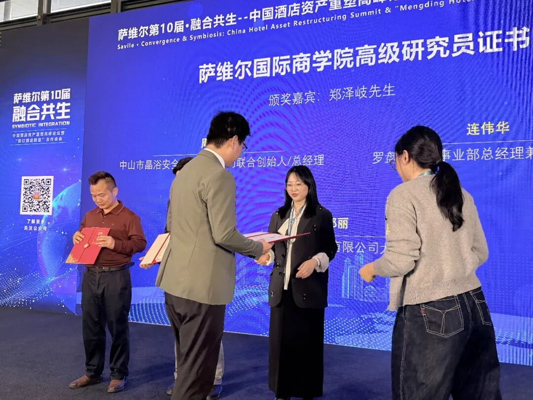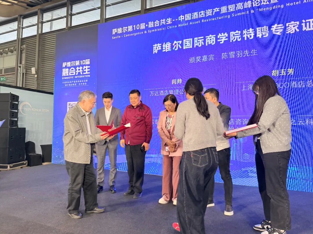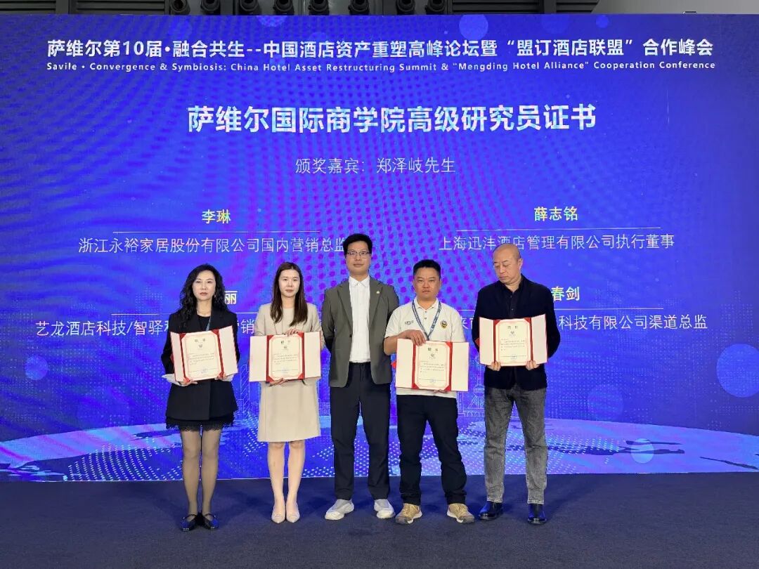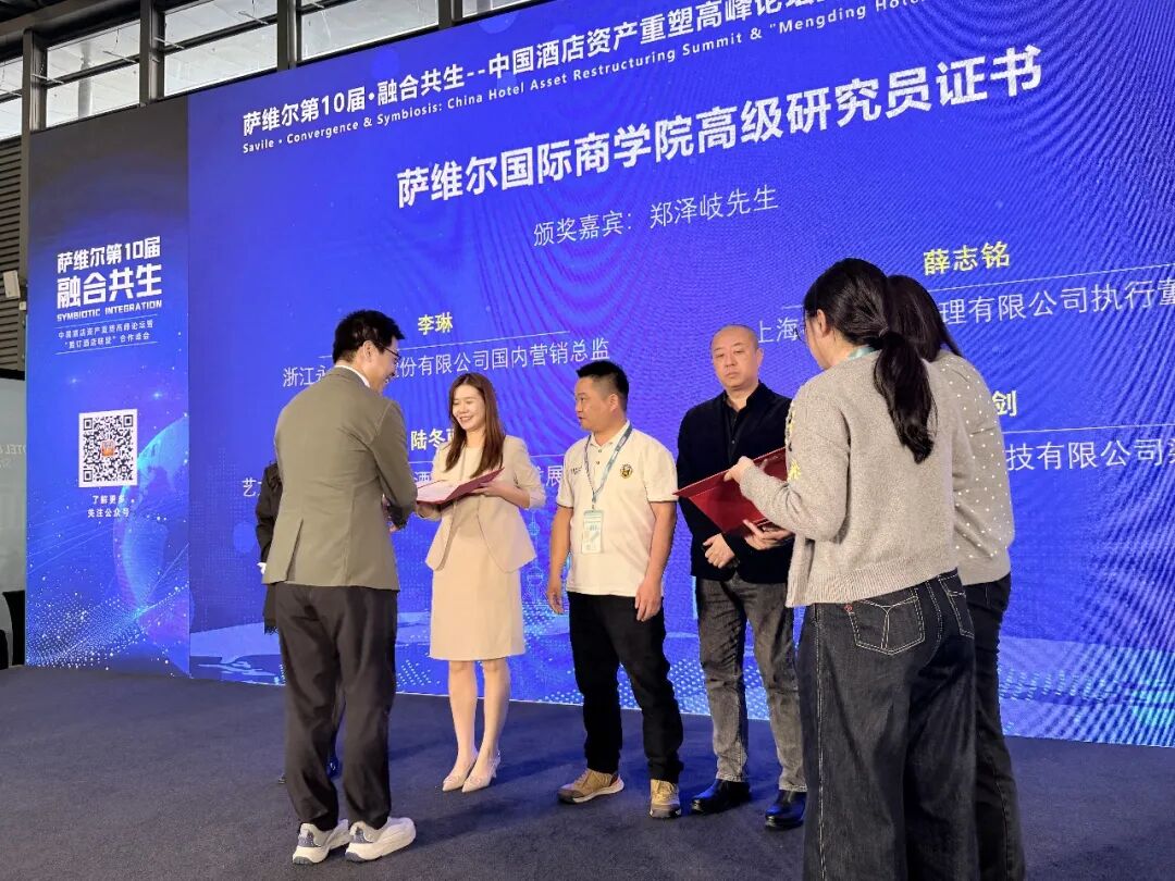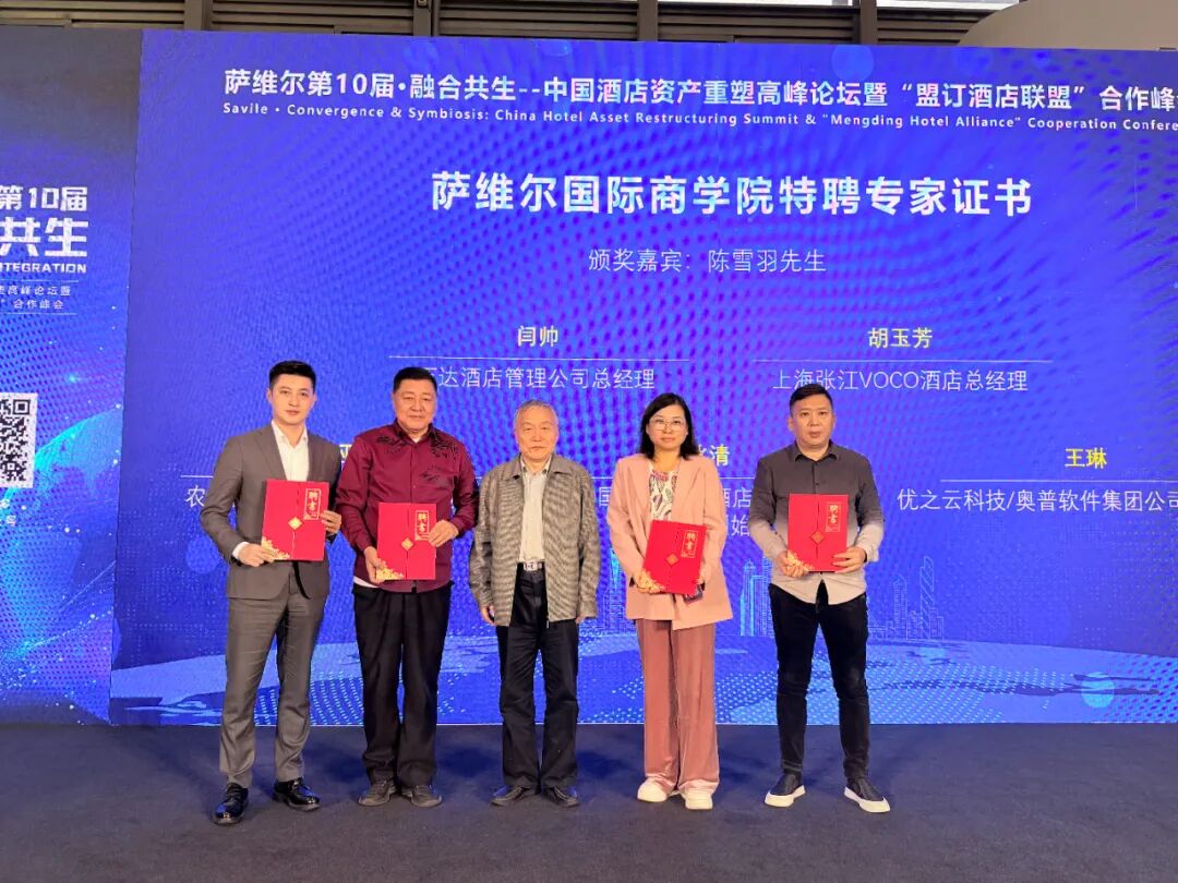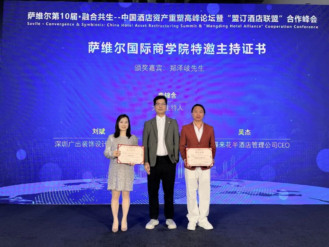 “薩維爾第10屆·融合共生–中國酒店資產(chǎn)重塑高峰論壇暨“盟訂酒店聯(lián)盟”合作峰會(huì)”組委會(huì)為表彰這一年來在文旅產(chǎn)業(yè)上下游行業(yè)為文旅行業(yè)貢獻(xiàn)的同行頒發(fā)薩維爾國際商學(xué)院聘書/組委會(huì)證書。